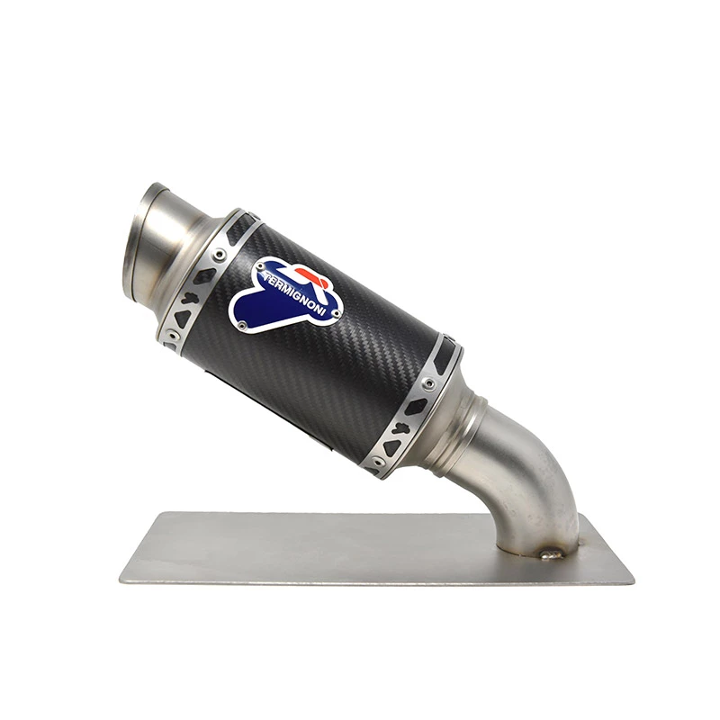 Il sistema completo è realizzato in: collettori in acciaio inox, camicia in carbonio, fondello in acciaio, fascette sotto rivetto, logo Rivettato.