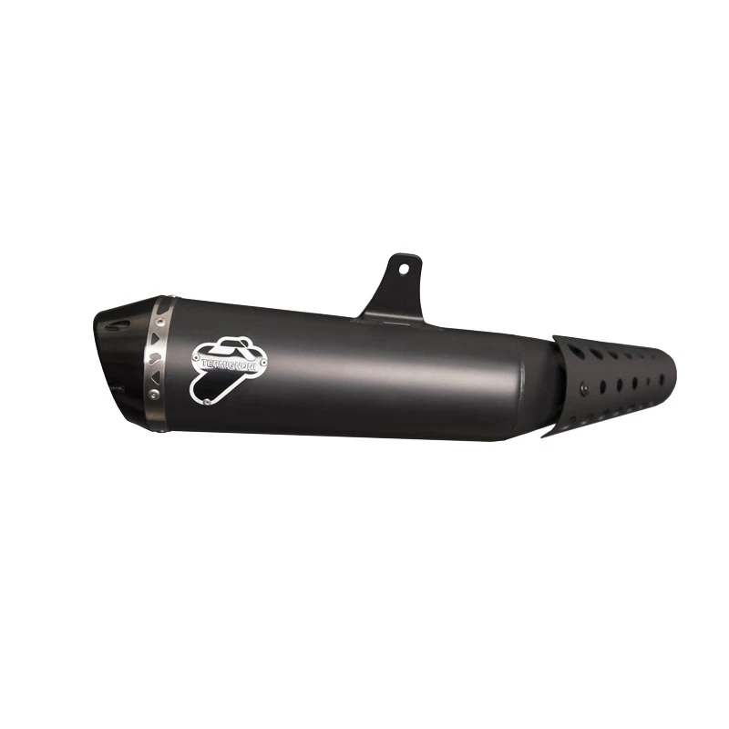 Il silenziatore caratterizzato da una verniciatura ceramica nera è realizzato in acciaio.